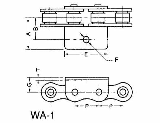 40R WA-1 – ANSI Standard Roller Chain – WA-1 Wide Contour Attachment